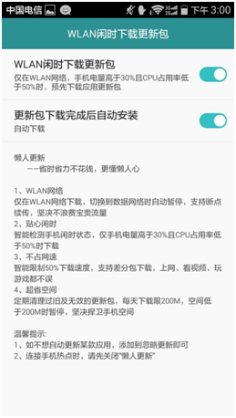 2、在手机的WLAN设置中,推荐勾选“永不休眠”,数据开关一直打开;