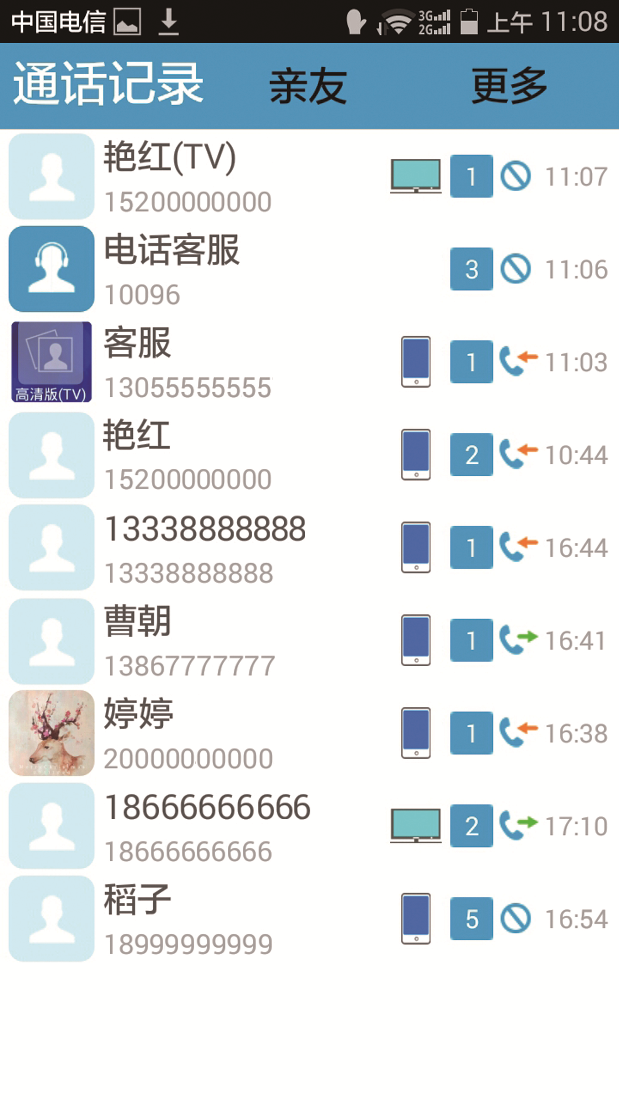2、选择【通话记录】界面,可快速拨打已联系人。