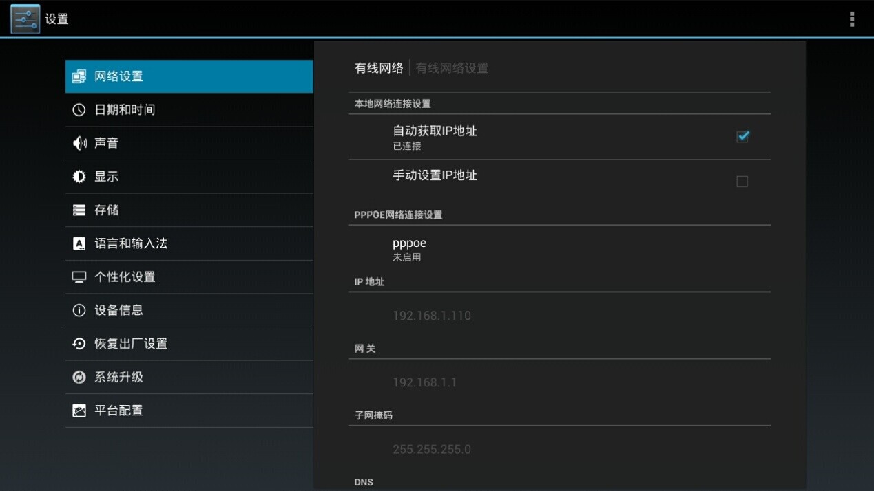 互联网机顶盒通过网线连接的路由器,请在网络设置—有线网络里,选择自动获取IP地址。提示已连接,表示网络连接成功。